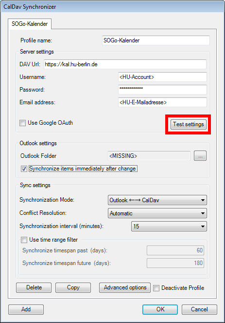 Der CalDav-Synchronizer ist ein Programm zur Synchronisation von Kalendern, Aufgaben und Kontakten zwischen Outlook und einem CalDAV- und CardDAV-fähigen Server, wie SOGo.