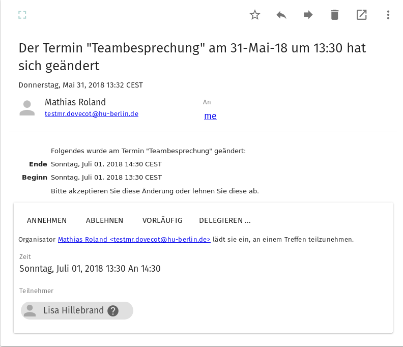 Humboldt-Universität zu Berlin | Computer- und Medienservice | Dienstleistungen | Kalender | SOGo-Kalender | Beschreibung für SOGo5 | terminaenderung einladung terminaenderung einladung terminaenderung_einladung.png image/png Typ image/png Dimension Abmessungen 792x682 Size Dateigröße 50.0 KB Herunterladen Bild in voller Größe anzeigen…