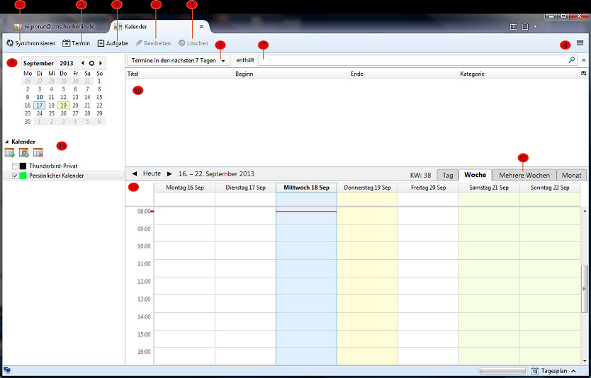 Humboldt-Universität zu Berlin | Computer- und Medienservice | Dienstleistungen | Kalender | SOGo-Kalender | Thunderbird_Kalender.png Thunderbird_Kalender.png Abb.: Natascha Nigro Thunderbird_Kalender.png image/png Typ image/png Dimension Abmessungen 834x534 Size Dateigröße 236.2 KB Herunterladen Bild in voller Größe anzeigen…