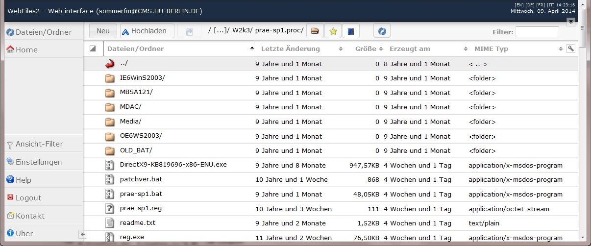 WebFiles2 WebInterface Zurück