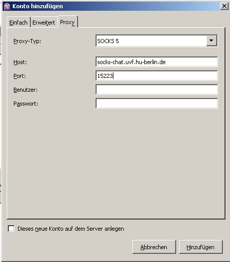 Humboldt-Universität zu Berlin | Computer- und Medienservice | Dienstleistungen | DV in der Verwaltung | Empfehlungen | Spezielle Dienste | Anleitung Pidgin Schritt 4 Anleitung Pidgin Schritt 4 pidgin04.jpg image/jpeg Typ image/jpeg Dimension Abmessungen 448x511 Size Dateigröße 43.6 KB Herunterladen Bild in voller Größe anzeigen…