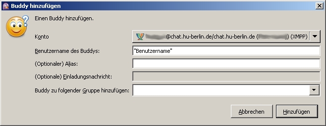 Humboldt-Universität zu Berlin | Computer- und Medienservice | Dienstleistungen | DV in der Verwaltung | Empfehlungen | Spezielle Dienste | Pidgin Anleitung Schritt 5 Pidgin Anleitung Schritt 5 pidgin05.jpg image/jpeg Typ image/jpeg Dimension Abmessungen 658x255 Size Dateigröße 52.8 KB Herunterladen Bild in voller Größe anzeigen…