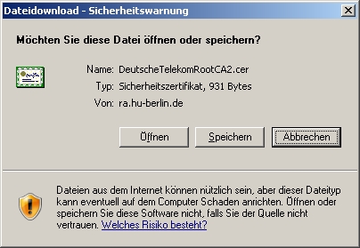 Humboldt-Universität zu Berlin | Computer- und Medienservice | Dienstleistungen | PKI-Services | Bilder | install-ie1 install-ie1 install-ie1.jpg image/jpeg Typ image/jpeg Dimension Abmessungen 404x279 Size Dateigröße 55.3 KB Herunterladen Bild in voller Größe anzeigen…